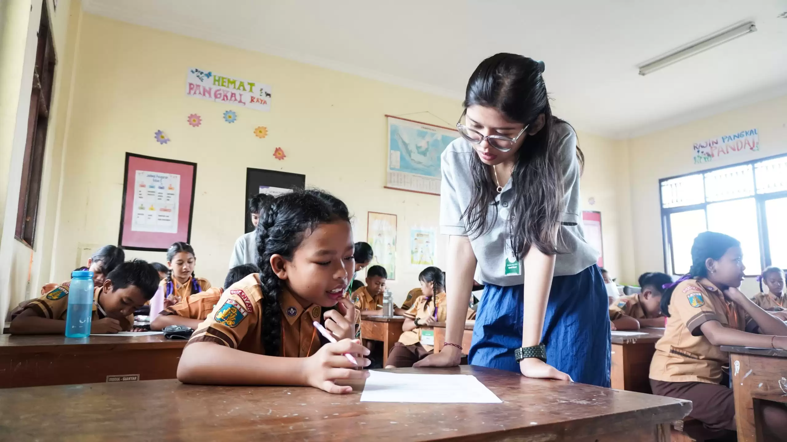 “Saya tidak suka Bahasa Inggris. Tapi semenjak belajar sama kakak, saya jadi suka,” ungkap Nadia.